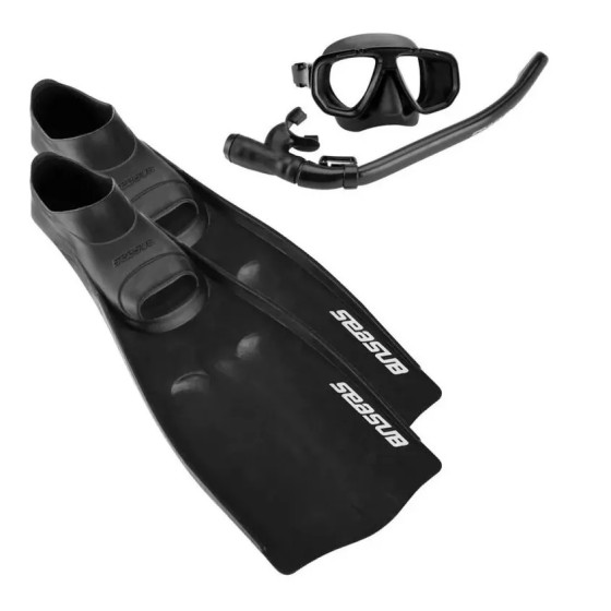Máscara DUA + Respirador SPIRO C VALAVULA + NADADEIRA SEASUB cor PRETO